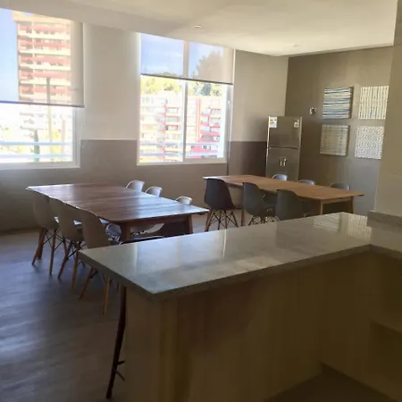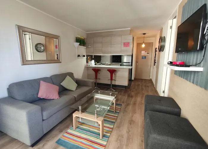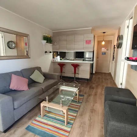 Departamento 1B+1D Alvarez 1802 apartment is equipped with an electric kettle, a refrigerator, and kitchenware, ensuring your comfort. Viña del Mar Bus Terminal train station lies a 10-minute walk away.